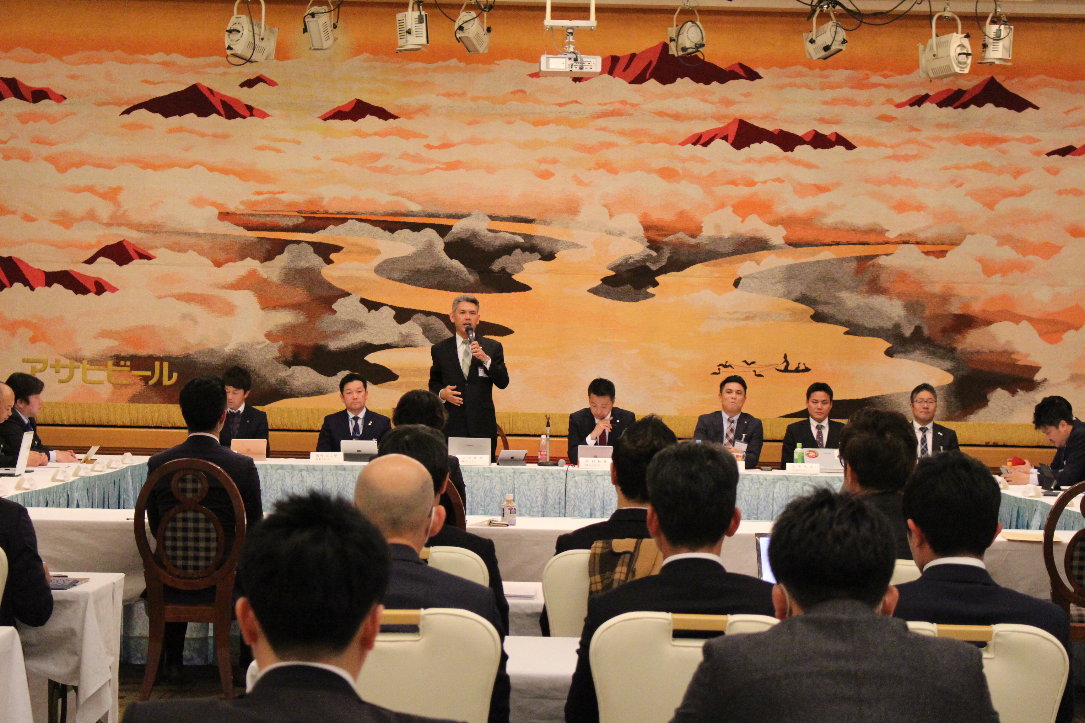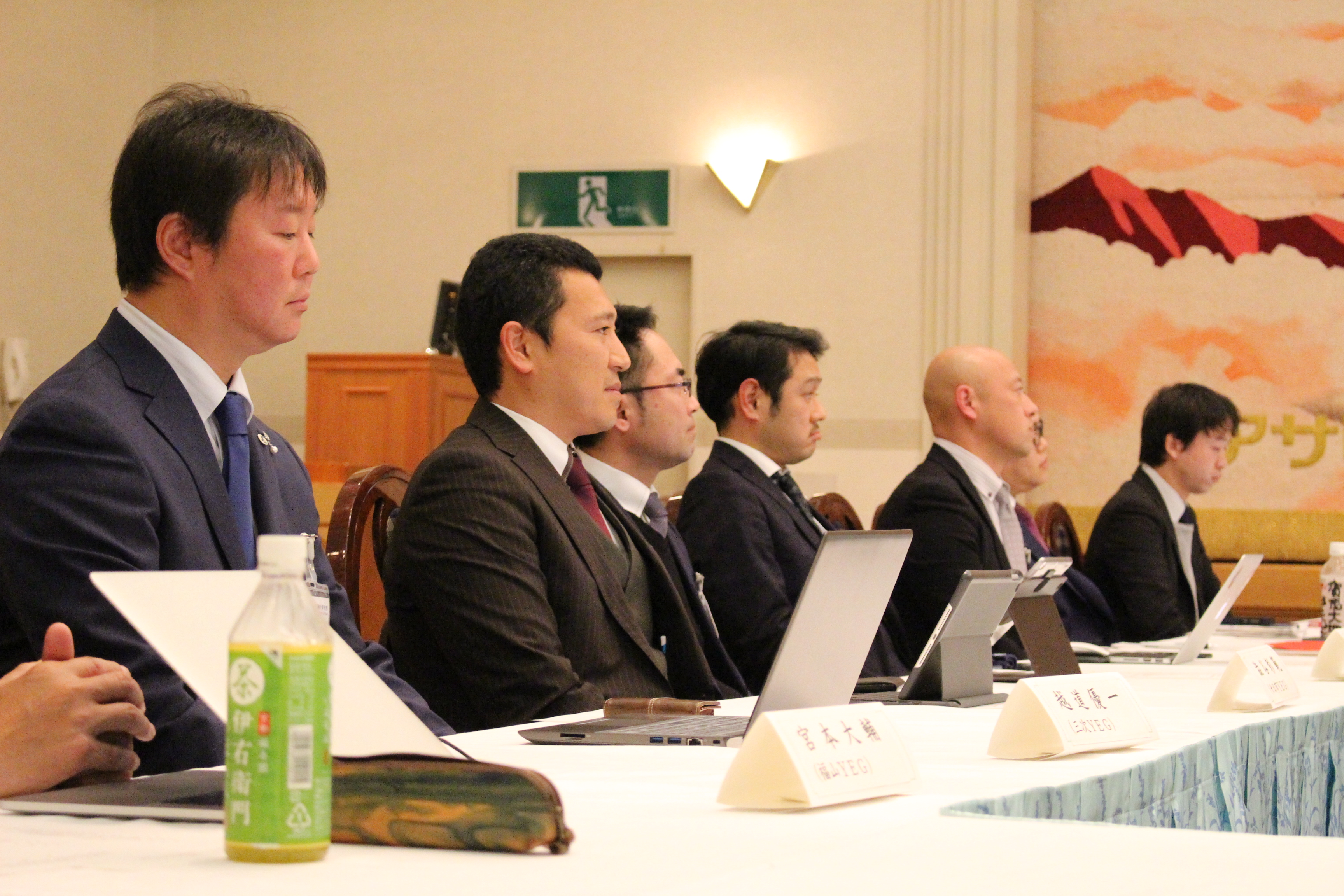 次年度、三次YEGから出向される信國会長予定者からご挨拶があり、次年度広島県連会長所信(案)と事業計画書(案)、広島県連スケジュール(案)、広島県連収支予算(案)が協議されました。